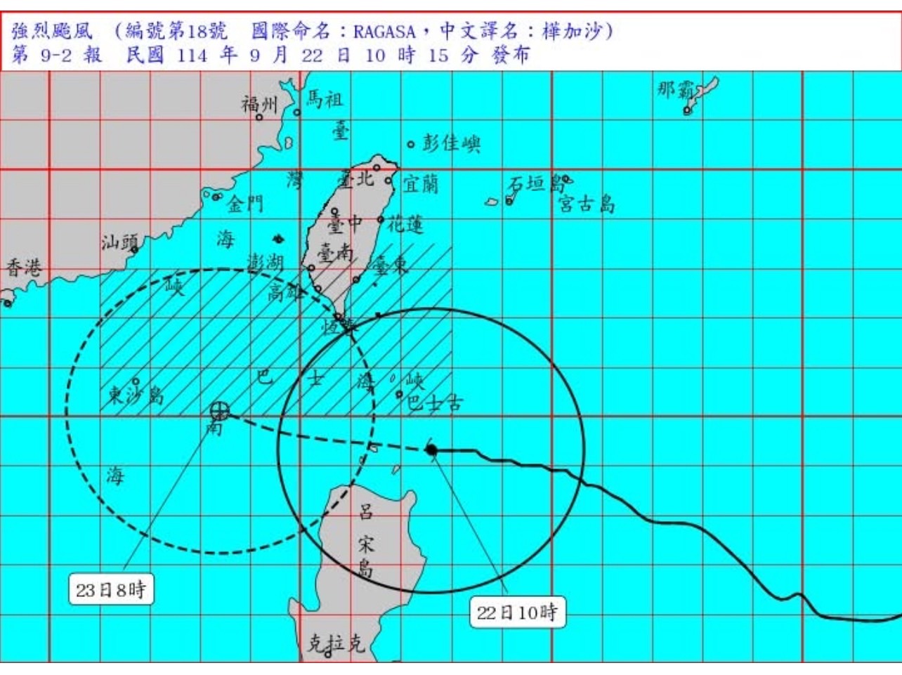 查中央氣象署公告有關樺加沙颱風動態(9.22上午10: